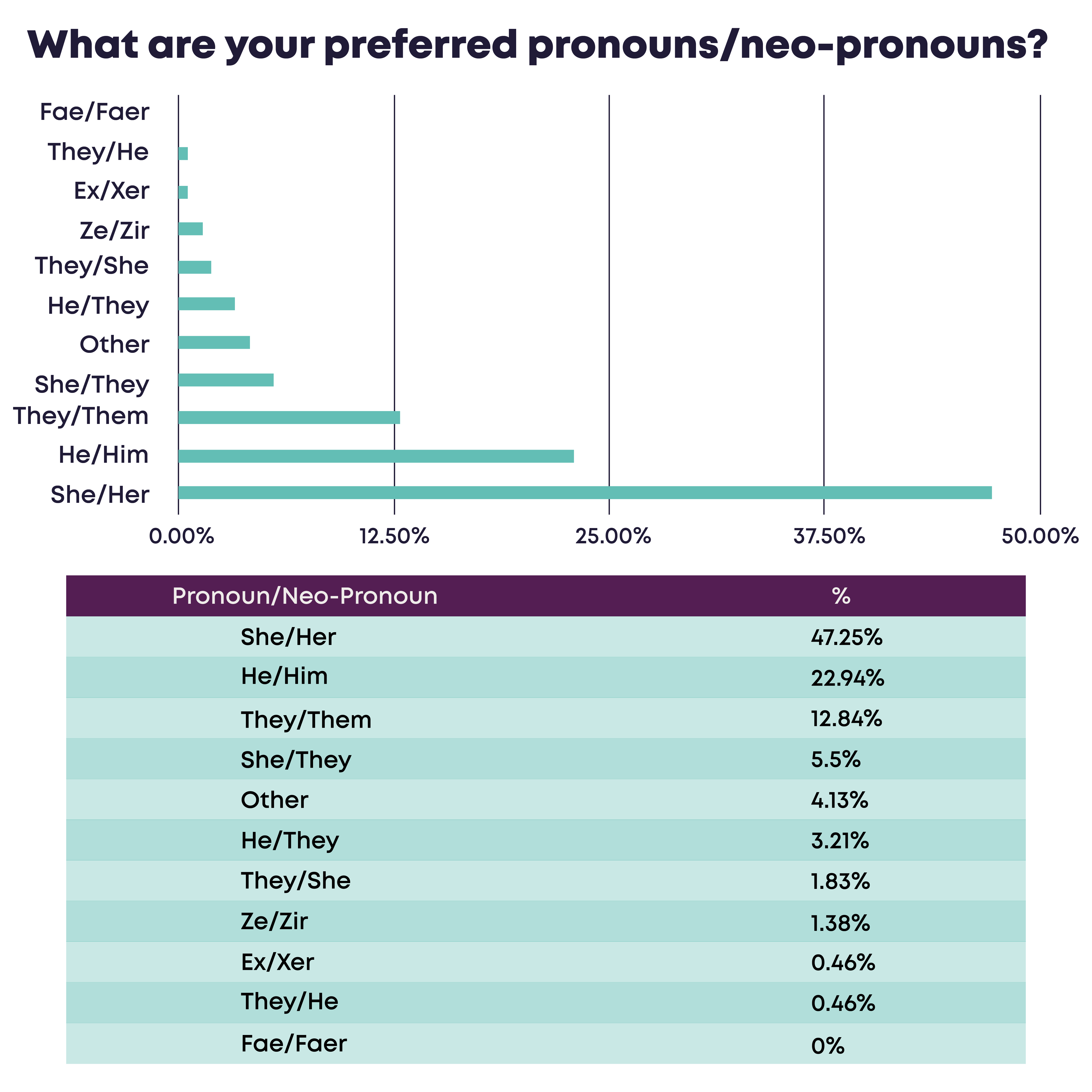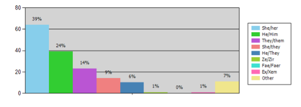 7% of students selected other, they were then given the option to write in there preferred pronouns/neo-pronouns. Some of the preferred options used by these students are: