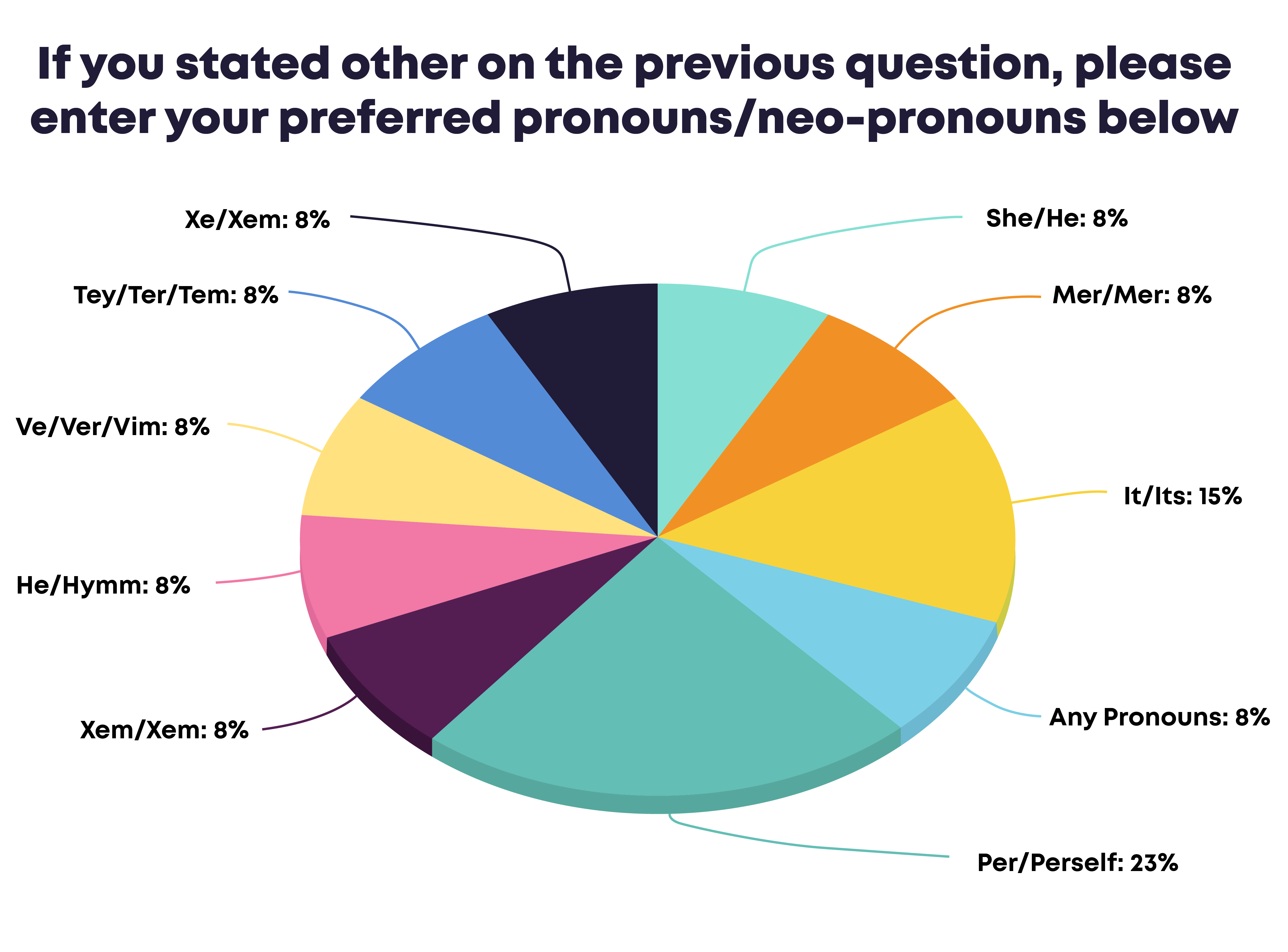 Even in the singular use of they/them, people were still limited to three pronoun categories – this can feel restrictive to some people when we know there are a lot of differing gender identities and ways to express that.