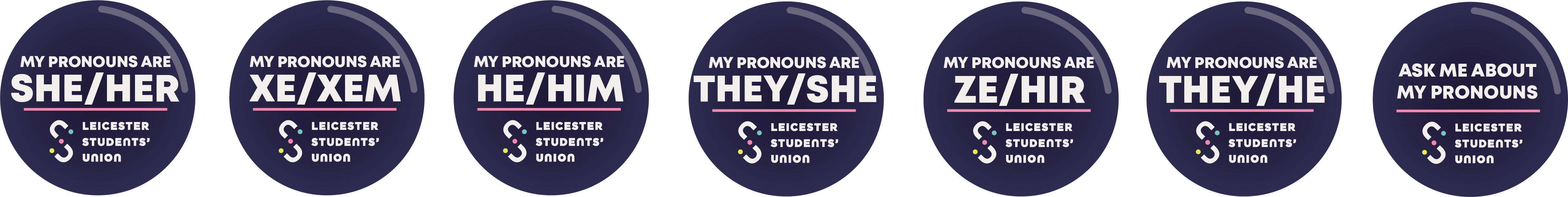 Pronoun and neo-pronoun badges are available for FREE from the SU Office in Percy Gee.